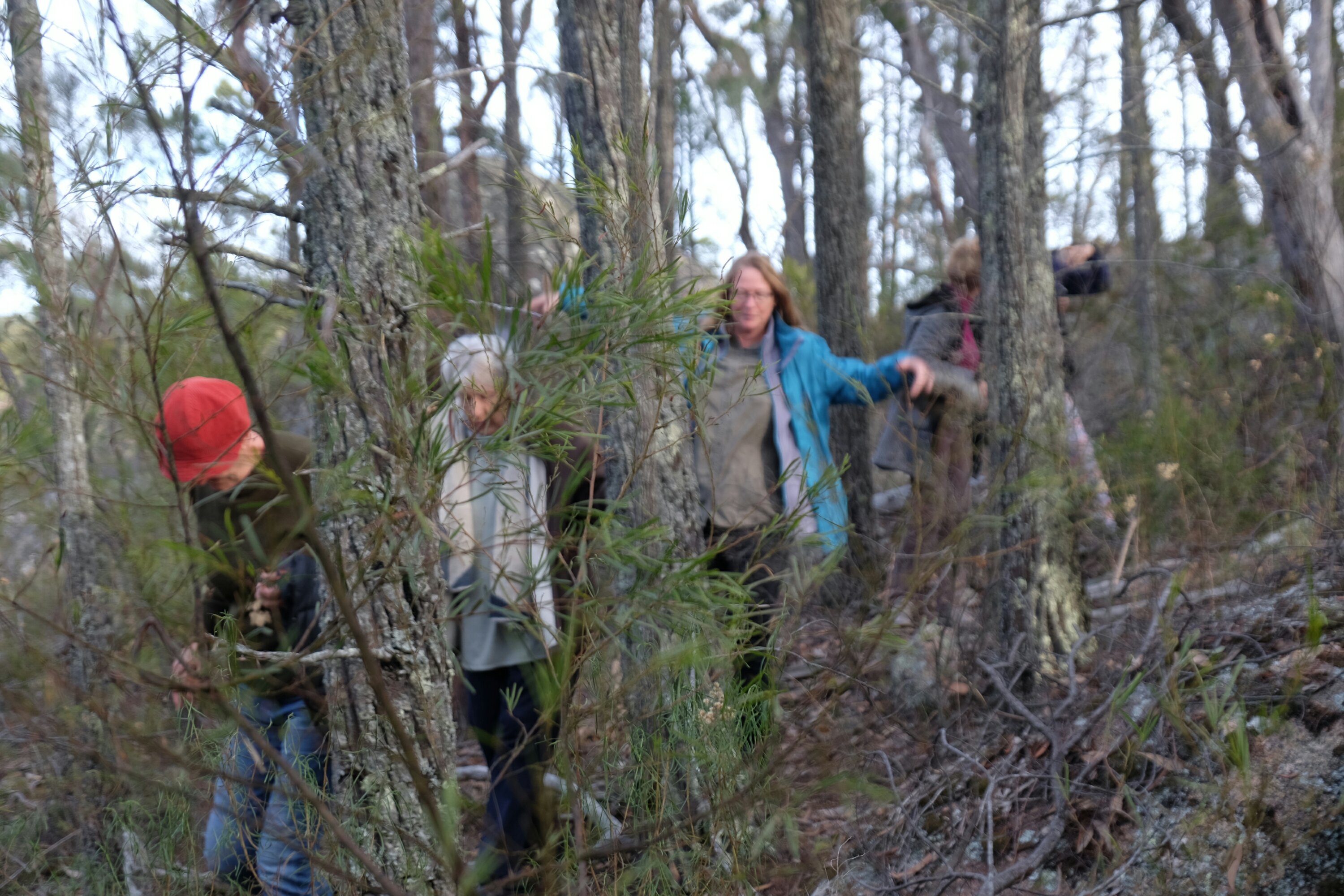 Participants will have the opportunity to make work in several different, but accessible natural settings. We have observed areas being created by wallabies who nurture certain grasses, rock rooting plants and lichens colonizing cliff faces, and other spaces in which organisms have formed observable alliances by creating protective habitats.
