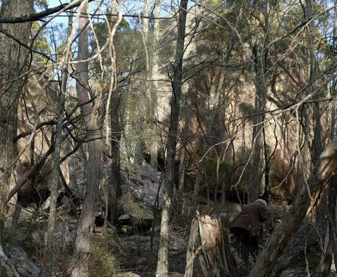 Necessarily these encounters are improvisations as the sites are complex interactive ecologies. we arrive at a forest textured with stringy bark, the geometry of cypress and scribbled lines of angophra, interlace with large fallen timber glowing surfaces of red and yellow fungus.