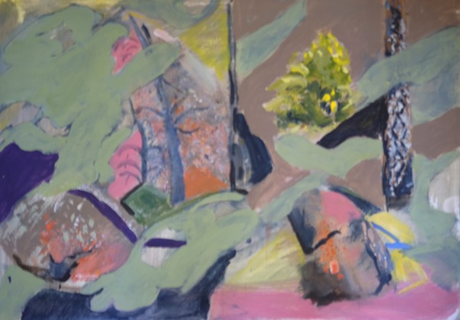 We have enjoyed drawing, painting and walking here for many years, the dramatic boulder forms and escarpments possess a great variety of textures in lichen growth, moss and rock crystal. In this workshop we’ll focus on the screen-like quality of the encounter with these surfaces, using methods of pattern making and image sampling to engage in the drawing and painting process. To paint and draw in situ we will set up art materials on tarps (provided) as a personal space from which to explore the environment.